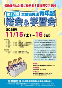 全農協労連女性部は、10月25~26日にかけて東京都内で第57回農協に働く女性のつどいと第14回定期総会を開催します。
